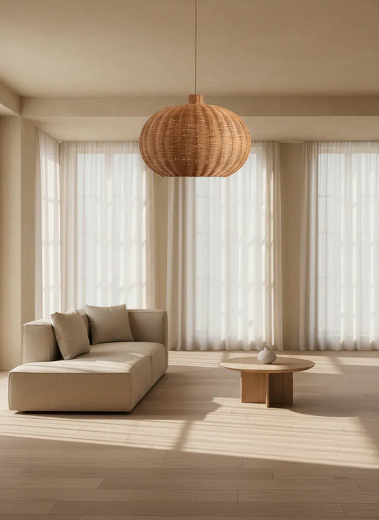 Les matériaux naturels s'intègrent parfaitement à l'environnement extérieur, prolongeant le thème du jardin et de la nature. Le rotin, le bambou, l'osier, le chanvre (comme des luminaires en corde) ou même le tissu (type macramé ou tissus plus fins) apportent une lumière tamisée et une ambiance feutrée. Cependant, pour les tissus clairs, une attention particulière est requise car les particules dans l'air et les intempéries peuvent altérer leur couleur avec le temps, nécessitant un nettoyage régulier. Ces options sont particulièrement prisées pour créer des décors de style zen, bohème ou bord de mer.