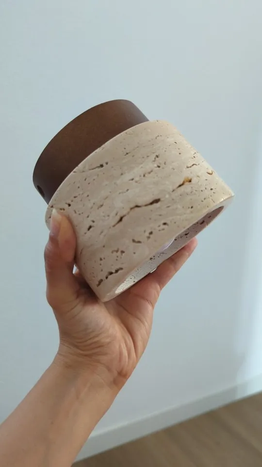 Connu pour ses teintes chaudes et sa texture unique, le travertin, un type de marbre utilisé depuis l'Antiquité, confère à ce luminaire une élégance intemporelle.